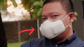 Маска-воздухоочиститель оснащается двумя мини-вентиляторами которые принудительно прогоняют воздух через сменные фильтры HEPA13. Производительность вентиляторов составляет от 20 до 55 л/мин. Опционально можно докупить футляр с УФ лампой для дезинфекции.
