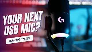 Logitech Yeti GX покрывает диапазон частот от 6 Гц до 18.5 кГц, звуковое давление здесь составляет 135 дБ, а соотношение сигнала к шуму — 78 дБ. Звук записывается в качестве вплоть до 24 бит / 96 кГц. Для регулировки чувствительности в конструкции модели предусматривается поворотное колёсико, дополняемое кнопкой быстрого включения/отключения звука. Подключение микрофона осуществляется через разъём USB type C. Штатно модель поставляется с практичной настольной подставкой в виде устойчивой круглой платформы. К тому же в комплекте идёт переходник для установки микрофона на опциональную стойку-пантограф.