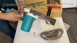 Ленточная шлифовальная машина с питанием от сети. Инструмент предназначен для обработки криволинейных поверхностей (вроде металлоконструкций, сваренных из труб) и труднодоступных мест. Шлифовальная машина Makita 9031 имеет мощность 550 Вт. У нее есть регулятор, позволяющий изменять скорость движения ленты в диапазоне 200 – 1000 м/мин для настройки инструмента под разные абразивы и материалы. Машина рассчитана на работу с кольцевой наждачной лентой, имеющей ширину 30 мм и длину 533 мм. Конструкцией инструмента предусмотрена возможность подключения пылесоса (в задней части корпуса есть отверстие диаметром 25 мм, закрытое заглушкой, в которое можно вставить шланг). Прибор весит 2.1 кг и имеет кабель питания длиной 2.5 м.