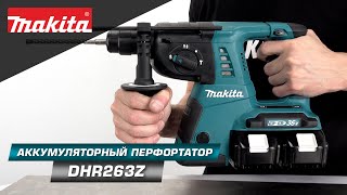 Модель DHR263Z поставляется без аксессуаров, в комплекте модели DHR263ZJ кейс Makpac, а в комплекте DHR263RF4 — 4 аккумулятора (3 Ач), зарядное устройство и кейс