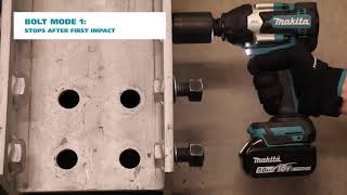 Импульсный гайковерт с большим крутящим моментом, предназначенный для работы с болтами и гайками размером от М10 до М24. Инструмент оснащен бесщеточным двигателем, имеющим 430 Вт полезной мощности. Работая с гайковертом Makita DTW700Z, пользователь может выбрать один из четырех режимов работы, которые отличаются по крутящему моменту и скорости вращения патрона: мягкий (150 Нм и 500 об/мин), средний (200 Нм и 1200 об/мин), жесткий (320 Нм и 1900 об/мин) и максимальный (700 Нм и 2200 об/мин).