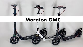 Отдельного внимания заслуживает система амортизации, которая сглаживает вибрацию и обеспечивает максимально плавное движение даже по неровному дорожному покрытию. Руль классического типа имеет удобные накладки и легко регулируется по высоте, подстраиваясь под каждого отдельного пользователя. Самокат Maraton GMC может «парковаться» в вертикальном положении, для чего предусмотрена подставка. Производители предусмотрели несколько цветовых решений — от более ярких желтого, зеленого, оранжевого до нейтральных черного или белого. Обилие вариантов позволяет подобрать свою модель практически каждому покупателю.