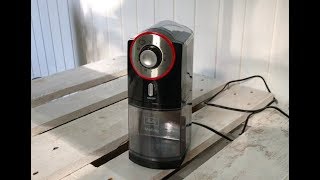 Прибор оснащен экономичным 100 Вт электромотором, способным работать непрерывно до 5 минут. Правда, после такого интенсивного режима работы ему нужно остывать около 30 минут. А оптимальными условиями эксплуатации кофемолки является равномерное сочетание нагрузки/отдыха 90/90 секунд. На лицевой панели находится поворотный регулятор для настройки времени помола кофе, определяющего выход порошка на определенное количество чашек (от 2 до 14). А на левой боковой грани есть колесико регулировки 17 степеней помола для эспрессо 1 – 3, фильтрованного кофе 2 – 13 и френч-пресса 12 – 17. Мелкий мельничный блок слегка разочаровал: он вовсе не содержит традиционной пары конусных жерновов, а снабжен лишь неким подобием дискового механизма, осуществляющего дробление и перетирание зерен. Из-за невысокого качества тонкого помола прибор не оправдал ожиданий в использовании с эспрессо машинами и рекомендуется поклонникам фильтрованного кофе.
