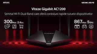 Для организации скоростного входящего подключения к сети провайдера предусмотрен WAN-порт Gigabit Ethernet с пропускной способностью до 1000 Мбит/с. В качестве аппаратной основы роутера Mercusys MR30G использована связка производительного чипсета со стандартным радиомодулем и четырьмя внешними антеннами с коэффициентом усиления 5 dBi. Для такой платформы производителем заявлена впечатляюще высокая пиковая (теоретическая) скорость беспроводных соединений (867 Мбит/с в диапазоне 5 ГГц и до 300 Мбит/с при 2,4 ГГц).