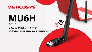 В отличие от более дешевых однодиапазонных адаптеров, обеспечивает гораздо более высокие скорости передачи пользовательских данных. Имеет сравнительно небольшие габаритные размеры, оборудован поворотной (в двух плоскостях) двухдиапазонной антенной. При умеренных расстояниях до Wi-Fi-роутера или точки доступа, адаптер Mercusys MU6H позволяет отказаться от прокладки кабеля и полностью заменить сетевое проводное подключение класса Fast Ethernet.
