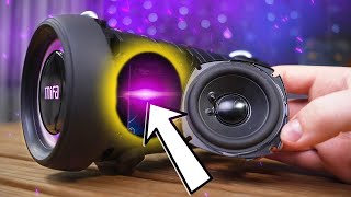 Долгоиграющая беспроводная акустика в водонепроницаемом исполнении, которая порадует качественным звучанием и световыми эффектами в такт музыке. В корпусе-бочонке модели разместились два полнодиапазонных динамика 66 мм в диаметре и два пассивных излучателя (по 78 мм каждый). На пике громкости колонка выдаёт суммарную звуковую мощность до 60 Вт. В торцы корпуса устройства дополнительно встроена цветная подсветка, переливающаяся разными тонами спектральной палитры в ходе проигрывания аудиотреков.