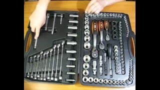 ![]() | Товар устарел Общее кол-во единиц (шт): 120; Посадочный квадрат ("): 1/2, 1/4, 3/8; Торцевые головки (6 граней) (шт): 63; Размеры торцевых головок (6 граней) (мм): 4 — 32; Свечные головки (шт): 2; Биты (шт): 24; Переходник (шт): 1; Ключ-трещотка (шт): 3; Отверточная рукоятка (шт): 1; Комбинированные ключи (шт): 10 |