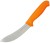 Изогнутая рукоятка ножа изготовленная из термопластичной резины (TPE). Нескользящая поверхность. Защита для пальцев. Шведская нержавеющая сталь 10C28Mo2, твердость 56.5 HRC.