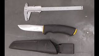 При этом имеется нескользящая прорезиненная рукоятка, а для удобства транспортировки в комплект поставки включены пластиковые ножны с возможностью крепления на поясе. Еще одной фишкой эргономики выступает наличие подпальцевой выемки на ручке, благодаря которой изделие легче удерживать именно прямым хватом, но в результате и общая универсальность применения несколько снижается.