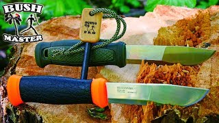 Предназначенный для походов, охоты или рыбалки нескладной нож производства Mora — это решение на стыке начального и среднего ценового сегмента. В комплект поставки включены ножны. Они дополнены креплением для фиксации на поясе или рюкзаке, а сами сделаны из прорезиненного пластика, причем оформлены в том же цвете и фактуре, что и резиновая рукоятка. Последняя хорошо лежит в руке, препятствует скольжению и в целом добавляет удобства в эксплуатации.