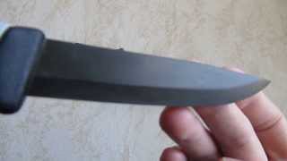 Нож Mora Robust изготовлен из углеродистой стали, которая является максимально твердой, хорошо выдерживает ударные нагрузки и держит исходную остроту. Вместе с тем из-за слабой антикоррозионной защиты металл рекомендуется защищать от влаги и насухо протирать после каждого использования. Лезвие имеет длину 9.2 см и толщину 3.2 мм. Еще одна особенность модели — это эргономичная рукоятка. Она выполнена из резины: данный материал гарантирует удобное удержание в руке, не боится воды и не должен проскальзывать даже в потных ладонях. Также стоит отметить, что общая длина изделия слегка превышает 20 см, а в комплектацию входят практичные пластиковые ножны для хранения и переноски (они дополнены клипсой для фиксации на поясе).