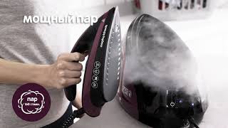 Утюг с парогенератором компании Morphy Richards сразу привлекает внимание своим стильным дизайном и насыщенной фиолетовой расцветкой. Но, помимо внешнего вида, у него еще много сильных сторон. Это один из самых мощных продуктов производителя: высокая мощность в 3000 Вт обеспечивает быстрый нагрев (около 2 минут), а давление парогенератора в 7 бар — интенсивную подачу пара. Это позволяет эффективно устранять даже стойкие складки, проглаживать несколько слоев ткани одновременно и значительно ускоряет процесс глажки.