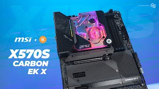 MSI MPG X570S CARBON EK X оборудована продвинутой 16-фазной цифровой подсистемой питания с продвинутой элементной базой, уплотнённым текстолитом, специальными защёлками для модулей памяти, укреплёнными зажимами для видеокарты и прочими удобствами. Для охлаждения используется встроенный в плату водоблок, который обеспечивает идеальное охлаждение процессора и зоны VRM, гарантируя оптимальный баланс между нагревом и уровнем шума.
