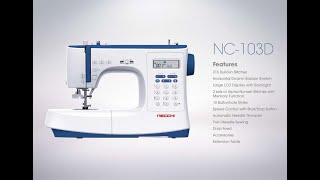 На переднюю панель выведены кнопки для быстрого доступа к основным видам строчек. Necchi NC103D оснащена прочным стальным каркасом, бесшумным горизонтальным челноком с системой быстрой заправки нижней нити QBT и мощным двигателем (70 Вт), который обеспечивает скорость шитья до 850 стежков в минуту. Многосегментный транспортер и регулируемое давление лапки на ткань дают возможность обрабатывать любые материалы — от тонкого шифона и шелка и до плотной кожи и джинсы, сложенных в несколько слоев.