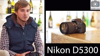 Главной особенностью этой камеры можно назвать наличие встроенного модуля Wi-Fi — впервые среди «зеркалок» от Nikon. Однако даже без учёта этого она представляет собой весьма функциональное устройство. Так, у камеры D5300 матрица на 24,1 Мп (формат APS-C) не имеет низкочастотного фильтра, что в сочетании с 20 сюжетными программами обеспечивает широкие возможности для творчества. За работу устройства отвечает процессор Expeed 4. Дисплей способен поворачиваться, его диагональ — 3,2", разрешение — 1037 тыс. пикс. Модуль Wi-Fi позволяет загружать материалы на компьютер или в Интернет, а также управлять камерой дистанционно. Данный вариант комплектации включает объектив.