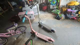 Для ускорения необходимо удерживать курок газа на руле. Также на рулевую колонку вынесена ручка торможения посредством заднего электрического тормоза. Рама самоката сварена из двух стальных труб, для удобства хранения и транспортировки её сделали складываемой. 6-дюймовые покрышки на колёсах электрического транспортного средства изготовлены из синтетического каучука, который эффективно поглощает вибрации и мелкие неровности дорожного полотна. На одном запасе аккумулятора ёмкостью 2.5 Ач самокат способен преодолеть дистанцию порядка 10 км, после чего батарею понадобится зарядить. Полная процедура восполнения энергетических запасов в ячейках аккума занимает по времени 2.5 часов. В довесок модель оснащена RGB-подсветкой — её цвет зависит от выбранного режима движения и может быть красным, синим или многоцветным.