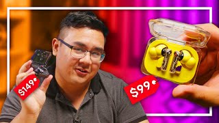 Беспроводные наушники Nothing Ear (a), выпущенные компанией, основанной бывшим руководителем OnePlus, выделяются своим доступным ценником и необычным дизайном. Эта модель доступна в трех цветах, включая ярко-желтый, и привлекает внимание прозрачными элементами наушников и зарядного кейса, через которые видны внутренние детали, что придаёт устройству футуристичный вид. Вес наушников составляет около 5 г каждый, они удобно сидят в ушах и не выпадают, даже при активных занятиях спортом. Кейс легко поместится в кармане. Наушники защищены от влаги по стандарту IP54, хотя кейс имеет более скромную защиту IPX2, поэтому его лучше держать подальше от воды.