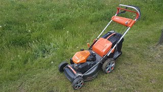 Очень хорошая газонокосилка за нормальные деньги. В сложенном виде много места не занимает. Ручку можно подрегулировать в широких пределах, подльзоваться удобно. Про то что возникают проблемы с мокрой травой могу отметить, что такое встречается у всех моделей, в том числе и очень дорогих. Качество сборки у этой модели меня очень порадовало, чувствуется, что прослужит долго. Газонокосилка очень надежная и простая в использовании. Большой мешок для травы. Есть мульчирование. Адекватная стоимость. Когда трава высокая и мокрая нужно проходить по одному и тому же участку по нескольку раз. Шуметь могла бы немного и потише. |