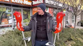 Благодаря небольшому весу (3,5 кг) и компактной силовой установке демонстрирует высокую мобильность, но требует использования больших удлинителей или кабельных барабанов. Триммер Oleo-Mac TR 92E оборудован компактным электрическим двигателем мощностью 900 Вт, крутящего момента которого вполне достаточно для кошения молодой и мягкой травы. Комплектуется триммерной головкой с механизмом полуавтоматической подачи лески диаметром 1,6 мм, который обеспечивает полосу обработки шириной 40 см. Изогнутая штанга с гибким валом и регулируемая по высоте D-образная ручка положительно сказываются на удобстве использования.