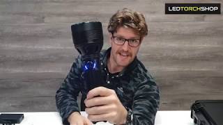 Корпус этого устройства изготовлен из алюминиевого сплава Т6061, который широко применяется в аэрокосмической промышленности. Твердое анодирование 3 класса дополнительно защищает металл от мелких царапин и потертостей. Безель из нержавеющей стали c PVD покрытием синего цвета предохраняет стекло фонаря от повреждения при случайном падении. Для питания используется комплектный аккумуляторный блок, состоящий из 8 аккумуляторных элементов типоразмера 18650 (3,7 В). Такая батарея имеет внушительную энергоемкость 86 Втч и рассчитана на 500 циклов заряда-разряда.