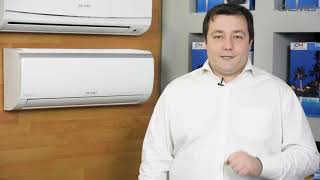 Отличается стильным дизайном внутреннего блока, оборудованного скрытым светодиодным индикатором температуры. Он способен достойно вписаться в любой современный интерьер, став его неотъемлемой частью. Благодаря высокому качеству комплектующих и использованию современного микропроцессорного управления, кондиционер имеет сравнительно невысокую максимальную потребляемую мощность (до 765 Вт) при значительно мощности охлаждения (2500 Вт). Сплит-система, может работать в режиме обогрева при температурах до -7 °C. Предусмотрена функция самоочистки, авторестарта, предусмотрен тихий ночной режим. Имеется возможность работы по программируемому 24-х часовому таймеру. Кондиционер отвечает европейским нормам экологической безопасности, в качестве фреона используется озонобезопасный агент R410a.