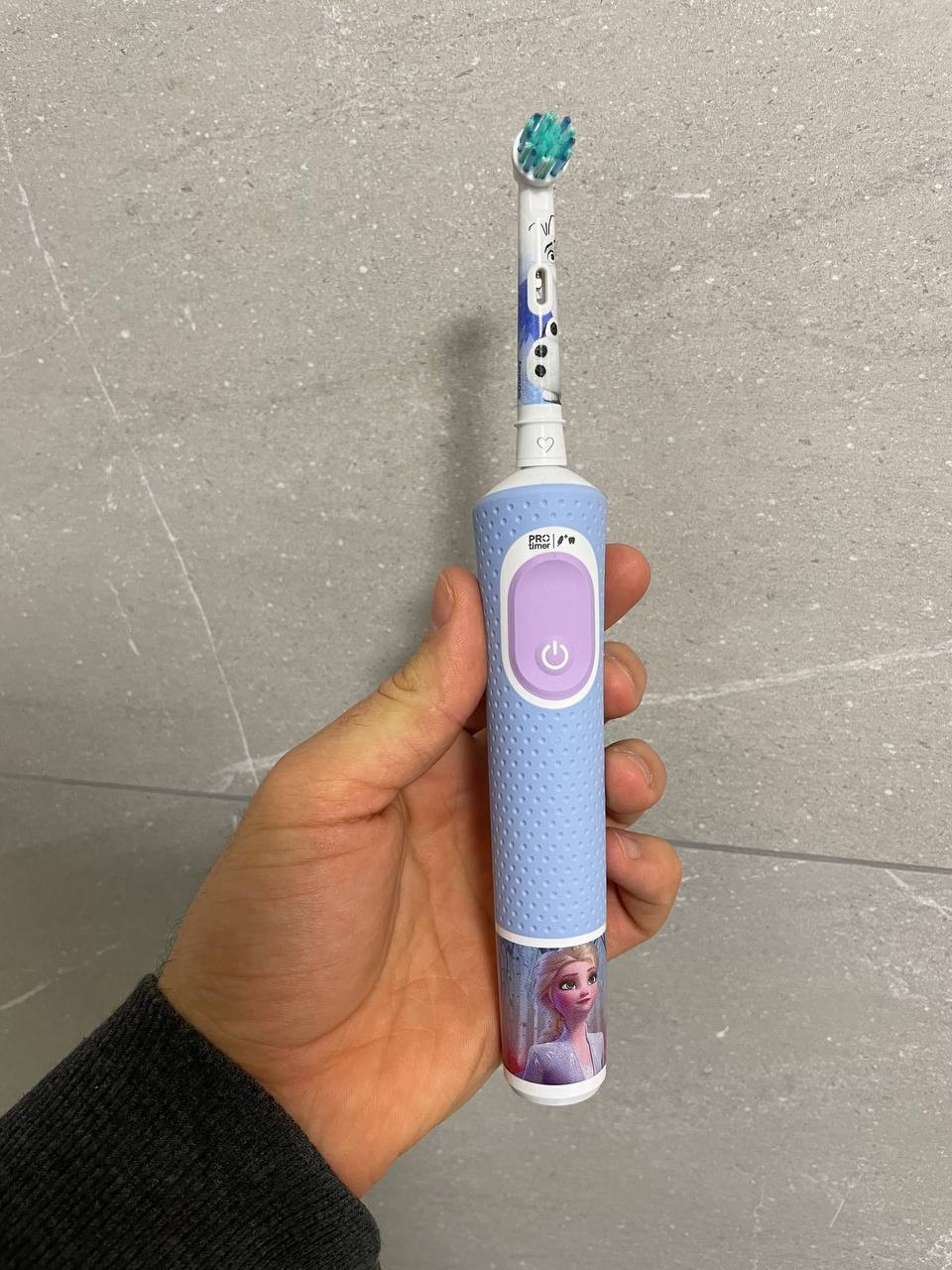 Электрическая зубная щетка Oral-B Vitality Pro Kids 3+ Frozen оснащена двухминутным таймером, обучающим детей соблюдать рекомендованную продолжительность чистки, а синхронизация с бесплатным приложением Disney Magic Timer позволяет взаимодействовать с героями мультфильма «Холодное сердце» прямо во время процедуры, мотивируя ребенка на качественный уход. В комплект входят четыре тематические наклейки для персонализации ручки щетки, позволяя детям самостоятельно украсить свой гигиенический инструмент любимыми персонажами. Встроенный индикатор износа насадки помогает родителям своевременно заменять изношенные щетинки для поддержания оптимальной эффективности и гигиеничности. Аккумулятор обеспечивает до 40 минут автономной работы, что при двухразовом использовании хватает на десять дней, а полная зарядка через USB-порт занимает 22 часа.