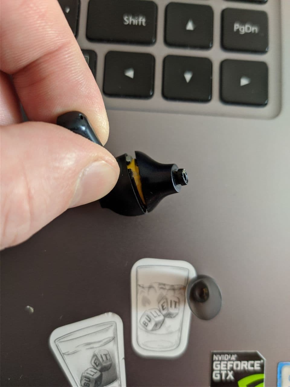 Это не первые мои наушники.Звук хороший,4/5 ,звукоизоляция могла бы быть и получше.С другими насадками звукоизоляция становится идеальной и появляется жёсткий сочный бас,хотя он и так на месте там(но надо ещё и подобрать насадки,а это не легко). Звук,aptx,время работы,защита от воды ipx7,дизайн,удобство Ну насадки были бы другие,тогда было бы совсем отлично. |