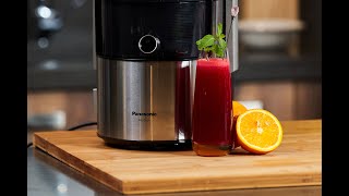 Станет надежной кухонной помощницей, которой вполне по силам ежедневно снабжать фруктовыми/овощными соками целую семью численностью 4-6 человек. Позиционируется как продукт средней ценовой категории 2015-го года. Благодаря особенностям конического роторного фильтра, обеспечивает быстрый и качественный отжим сока с автоматическим отбрасыванием образующейся мякоти. Значительный диаметр загрузочной горловины (75 мм) соковыжималки Panasonic MJ-DJ31 позволяет загружать плоды целиком или с минимально порезкой, что существенно экономит время на подготовительных операциях. Достойный уровень мощности двигателя (800 Вт) обеспечивает впечатляюще высокую скорость вращения и отличную производительность без потери эффективности. Предусмотрено регулирование скорости (2 варианта) для оптимизации режима переработки продуктов разной плотности. Комплектуется пеносепаратором, кувшином для сока объемом 1,5 л и сборником мякоти объемом 2 л.