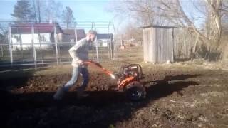 Мотоблок взяли так как имеем большой участок. Мощный. регулировки скорости, тележку для него не проблема тянуть, тележка легко идет. Для пахоты - не заменим, насадки полно любой к нему, узел прицепной стандарт. Глубина вспашки регулируется, фрезы идут в комплекте и колеса. Мотоблок если брать, так сразу мощный, может расширяться будете. мотоблок отличный вариант нет |