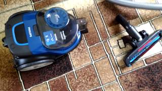 Система фильтрации HEPA соответствующая стандарту Allergy H 13 на 99.9 % очищает воздух от пыли, шерсти, клещей и вредоносной микрофлоры, делая его безопасным для людей, страдающих аллергией. Устройство неплохо укомплектовано сменными насадками, включающими комбинированную насадку для пола и ковров MultiClean, турбощетку для удаления шерсти, волос и пыли Turbo Brush, щелевую насадку и встроенную щетку для мягкой мебели. Кроме того к пылесосу идет гофрированный шланг и телескопическая трубка, состоящая из 2-х частей. Все это соединяется между собой с помощью быстроразъемной системы ActiveLock, надежно фиксирующей все элементы защелками. Мягкое движение обрезиненных колес не оставляет следа на паркете, а длинный кабель сетевого питания дает 9 м радиус действия. Модель отличают компактные размеры, небольшой вес и хорошая маневренность, ну а качеству уборки можно смело ставить высший балл!