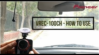 Изображение и звук записываются на карту памяти microSD объёмом до 128 ГБ. По умолчанию съёмка начинается с началом движения при подаче на авторегистратор питания от гнезда прикуривателя. Pioneer VREC-100CH оснащается датчиками движения и удара с регулировкой чувствительности. Тыльную сторону корпуса устройства занимает 2.7-дюймовый экран для настроек и просмотра отснятого видеоматериала «по месту». Регистратор размещается на лобовом стекле машины при помощи крепления-присоски. Автономное питание устройства во внештатных ситуациях обеспечивает встроенная аккумуляторная батарея ёмкостью 240 мАч.