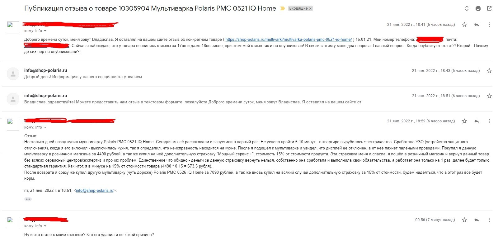 После возврата я сразу же купил другую мультиварку (чуть дороже) Polaris PMC 0526 IQ Home за 7090 рублей, а так же вновь купил на всякий случай дополнительную страховку за 15% от стоимости, будем надеяться, что в этот раз всё будет норм.