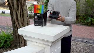 На объектив фотоаппарата допускается устанавливать цветные фильтры (приобретаются отдельно). Модель заполучила встроенную фотовспышку и небольшой видоискатель для удобства компоновки кадра. Энергией камера снабжается от встроенного литий-ионного аккумулятора. На полном заряде батареи можно получить свыше 15 распечатанных оттисков. Поставляется фотоаппарат мгновенной печати с практичным ремешком на запястье и зарядным кабелем USB type C длиной 1.2 м. Габариты камеры составляют 150x112x94 мм, её вес равен 456 г.
