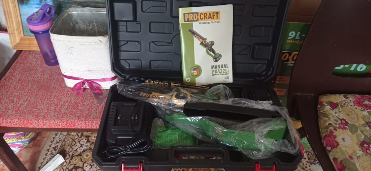 Син подарував мені акумуляторну пилу Procraft PKA32Li для роботи в саду, і я вже встигла добряче її випробувати. Пила виявилась дуже легка й зручна, рука не втомлюється навіть після довшої роботи. Оберти 4700 дають хороший запас потужності, а дві шини — маленька на 10 мм і більша на 200 мм — дозволяють вибирати, як зручніше працювати.Великий акумулятор на 4 А·год тримає заряд довше, ніж я очікувала. Змащення ланцюга працює в автоматичному режимі, і це справді спрощує роботу. Одразу з пилою отримала спеціальне мастило для ланцюга, наче воно біорозчинне, щоб не шкодити дереву токсинами.З мінусів помітила лише одне: мастило закінчується дуже швидко. Мабуть, система подачі трохи щедра, тож доводиться частіше його доливати, але до цього ми були готові, до купівлі дивились огляди.За ці дні я вже попиляла старі гілки, що роками лежали за будинком, і обновила дерева в саду. Працювати було дуже легко й приємно. Для домашнього користування — чудовий помічник, але не варто нехтувати правилами безпеки, все ж хоч вона і невелика, але це серьйозний інструмент. Маленька, потужна, чудово пиляє, дві шини і два ціпка у комплекті, "макітівське"гніздо під акумулятори, тобто можна використовувати від інших брендів. Легка заміна і натягнення ціпка, навіть такий пенсіонер як як впоралась. Не самий надійний масляний насос яки має великий розхід мастила |