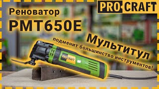 Универсальный инструмент для выполнения отрезных операций и шлифования. Оснащен мотором мощностью 400 Вт с регулятором, позволяющим настраивать частоту колебаний насадки (15000 – 21000 кол/мин). Реноватор Pro-Craft PMT 650E имеет быстрозажимной механизм для замены оснастки без ключа (насадки фиксируются и сбрасываются с помощью рычажка в передней части корпуса). К инструменту прилагаются пластиковый кейс и набор принадлежностей, включающий самые необходимые насадки: треугольную шлифовальную платформу с двумя листками наждачной бумаги (P60 и P80), шабер и зубчатое полотно для пиления. В комплект также включены запасные угольные щетки для реноватора.
