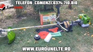 Бензиновый триммер для кошения травы, сорняков и зарослей кустарников. Инструмент оснащен двигателем мощностью 5.9 л.с., имеющим рабочий объем 58 см³. Двухтактный мотор работает на смеси бензина с маслом. Мотокоса Pro-Craft T-4350 имеет «велосипедную» рукоятку, на которой размещены органы управления. В комплект входят катушка с леской, предназначенная для кошения невысокой травы, а также трехлопастной нож (для кошения бурьянов с толстыми стеблями) и многозубый пильный диск (для срезания веток кустарников и стволов молодых деревьев). К инструменту прилагается ранцевая подвесная система (с мягкими лямками и защитой бедра), позволяющая распределить вес мотокосы (7.5 кг) на плечи.