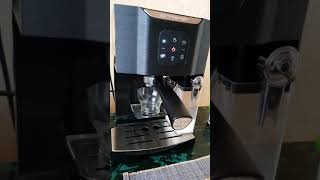 Кофеварка компактная (её размер 30.8 x 23.5 x 26 см), легкая и отлично сочетается с остальной черной бытовой техникой на кухне. Правда корпус глянцевый и собирает все отпечатки рук. Работает не громче самой обычной кофемашины, можно даже сказать, что тихо. Управление электронное, автоматическое (только рожок нужно набрать самостоятельно). Есть дополнительная подставка под маленькие чашки. Разобраться с функциями не сложно. В памяти есть несколько рецептов ( под каждый рецепт своя кнопка): эспрессо, двойной эспрессо, латте, капучино, молочная пенка и программа очистки. Вкус кофе получается насыщенный. Мне очень нравится. Пена регулируется, а вот температура напитка - нет. Кофе не горячий. И если совсем уж придираться - резервуар для молока занимает часть поддона и немного мешает. В остальном доволен этой кофемашиной. Компактная (30.8 x 23.5 x 26 см) и легкая. Управление электронное, автоматическое, разобраться с функциями получается быстро. Есть дополнительная подставка под маленькие чашки. В памяти сохранены несколько рецептов. Вкус кофе получается насыщенный, а пену можно регулировать. Корпус глянцевый и собирает все отпечатки рук. Температура напитка не регулируется, кофе не горячий. Резервуар для молока занимает часть поддона и немного мешает. |