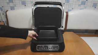 Подарили гриль опробовал все режимы все работает прекрасно жарил мясо ,рыбу, овощи, коврыжки все отлично, еще бы одну сменную панель гладкую и отдельный подогрев пластин, былобы просто чудо! Мощность, дизайн и удобство в работе Нет сменной панели гладкой , нет раздельного подогрева как в делони |