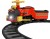 Поезд выпускает холодный пар, двигаясь по овальным 7,3-метровым путям. В набор входят 4 прямых и 4 изогнутых элемента пути.