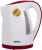 Традиционный пластиковый электрочайник со стальным дном, позиционируемый производителем в доступный ценовой сегмент. Корпус создан из пищевого термостойкого пластика, который не взаимодействует с кипятком и не источает специфического запаха. В этом чайнике используется необычная завышенная рукоятка. Загнутый вниз носик обеспечивает безопасное и комфортное дозирование горячей воды.