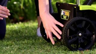 Колеса газонокосилки имеют диаметр 14 см спереди и 18 см сзади, благодаря чему она легко перемещается не только по ровному газону, но и по слегка неровной поверхности. Заднюю рукоятку можно отрегулировать по высоте, что позволяет подобрать комфортное положение под рост пользователя. Также она складывается, экономя место при хранении или транспортировке. Кнопки включения мотора удобно нажимать обеими руками, что делает устройство одинаково удобным как для правшей, так и для левшей.