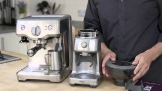 В наборе предусмотрено несколько вариантов держателя портафильтра, с направляющими разного размера. Управление режимом измельчения является механическим. Тонкость помола настраивается поворотом верхней головки, где расположена жерновая мельница. Кофемолка Sage BCG600 дозирует измельченный кофе по таймеру, время которого настраивается поворотным регулятором. Аппарат обеспечивает качественный помол во всем диапазоне размера фракций.