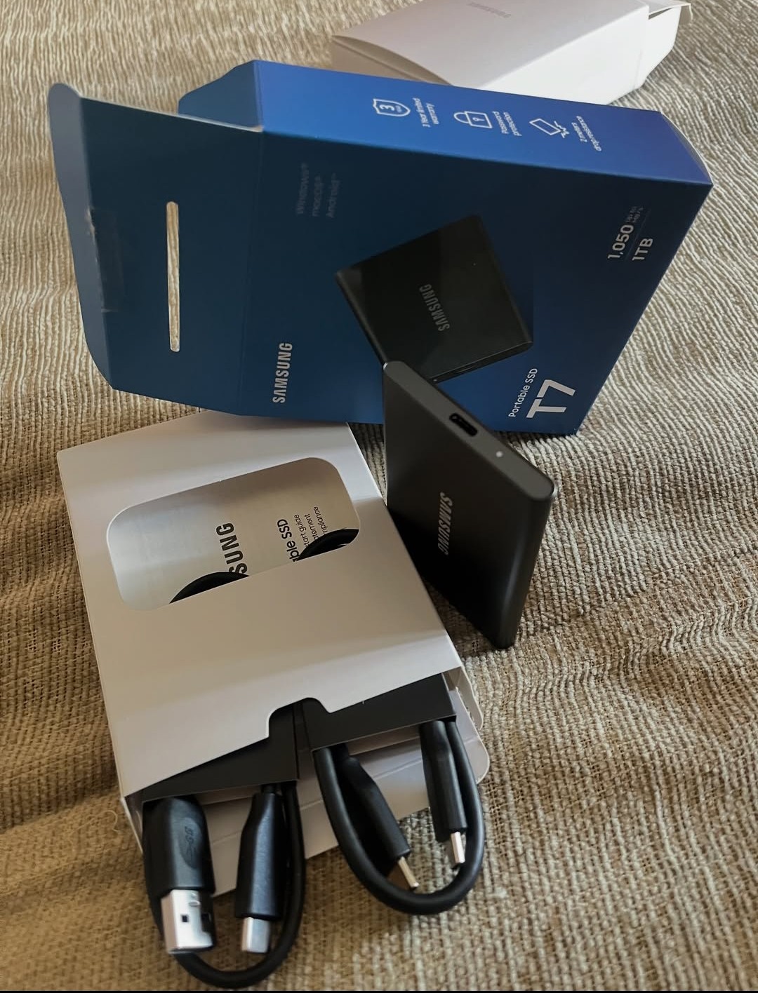 Внешний твердотельный накопитель на 1 ТБ компании Samsung — это относительно компактное (форм-фактор 2.5 дюйма) и легкое (менее 60 грамм) устройство для хранения и быстрого обмена данными. Он выполнен в ударопрочном металлическом корпусе, который должен уберечь модель от негативных механических воздействий, вроде случайных падений (с высоты до 2 метров). За быструю передачу информации и универсальные возможности подключения отвечает интерфейс USB C 3.2 gen2 вместе с соответствующим кабелем в комплекте поставки.