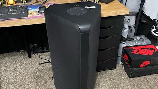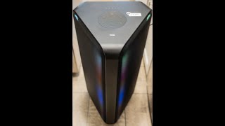 Корпус колонки имеет треугольную форму — эта конструкция сделана специально для того, чтобы обеспечивать объемный двунаправленный звук, который заполняет все пространство. К тому же, аудиосистема обладает большой мощностью в 1700 Вт. Режим Bass Booster позволяет дополнительно усилить басы. Также для усиления звука можно объединить несколько колонок — беспроводным или проводным способом.