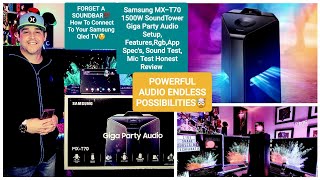 Башенная моноблочная колонка класса Sound Tower от Samsung, сделанная по принципу «все для вечеринки в одном корпусе». В отличие от многих аудиосистем данного типа при создании MX-T70 в Samsung отказались от возможности автономной работы и встроенного аккумулятора. Колонка работает только от сети. Впрочем, это и не удивительно, ведь она весит 27 кг, а ее суммарная паспортная мощность достигает 1500 Вт.