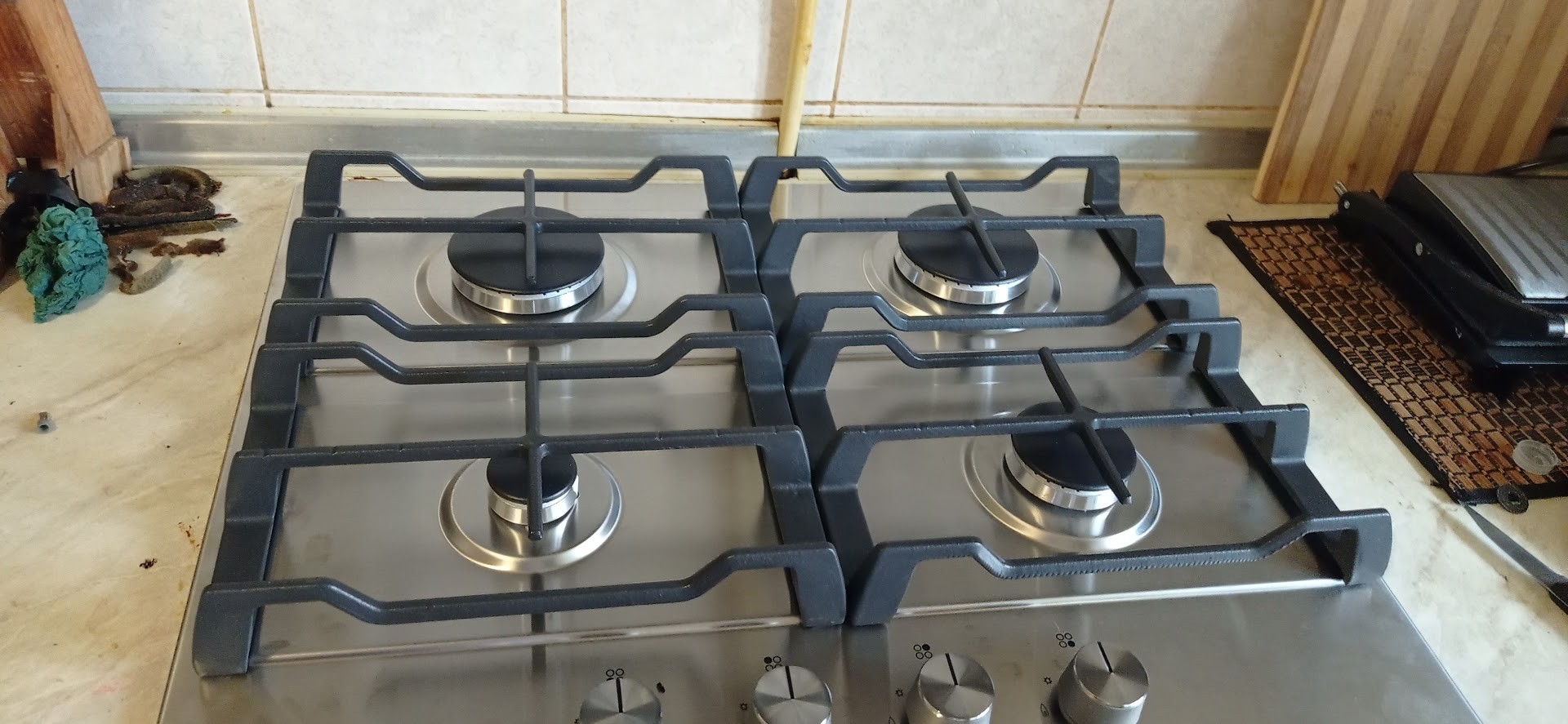З мінусів — немає окремої WOK-комфорки, інколи цього трохи бракує, якщо хочеться щось сильно обсмажити чи готувати у великій глибокій сковороді. Але для щоденного користування вона цілком підходить. Після приготування поверхня легко миється, хоча як і будь-яка нержавійка, може залишати сліди від пальців, якщо не протерти нормально. В цілому хороша, надійна поверхня без особливих наворотів — не топова модель, але за свої гроші виглядає й працює дуже гідно. Потужні великі комфорки, чудовий мінімалістичний дизайн, чавунні решітки, захист від потухлого полум'я (вимикається газ), ціна Ну тут персональне бажання, хотілось би рохи інше розташування комфорок |