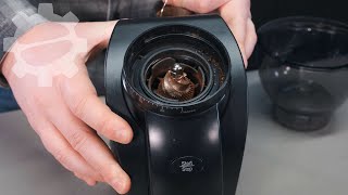 Пользователю доступно 15 степеней регулировки помола, что позволяет подобрать нужную дисперсность под разные способы заваривания — от крупного для френч-пресса до среднего для фильтра или гейзерной кофеварки. Вместимость контейнера для зерен составляет 250 г — этого достаточно для нескольких циклов работы. Молотый кофе поступает в отдельный отсек, что делает процесс чистым и удобным.