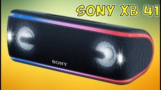 Флагманская колонка из линейки портативной акустики Extra Bass олицетворяет музыку светодиодными огнями, пульсирующими в такт прослушиваемым аудиотрекам. Лента подсветки пущена по периметру корпуса Sony SRS-XB41, также светом сияют оба динамика, поставленных на вооружение модели. Их суммарная мощность оценивается в 50 Вт. Пробивных басов воспроизводимым трекам прибавляет пассивный излучатель.