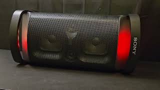 В колонке установлена два высокочастотных динамика диаметром 5 см и пара 14-см драйверов Sony X-Balance, которые немного разведены в стороны, чтобы звучание колонки равномерно растекалось по комнате. В случае нехватки баса пользователь может активировать опцию Mega Bass. Как и другие крупногабаритные колонки от Sony, данная модель оснащена ручками для переноски, атмосферной подсветкой с разными эффектами и держателем для смартфонов или планшета.