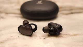 Оборудованы четырьмя микрофонами с технологией цифрового шумоподавления и могут работать в режиме hands-free-гарнитуры. Беспроводный интерфейс Bluetooth 5.0 показывает улучшенную стабильность соединений, низкие задержки и быстро восстанавливает сопряжение при извлечении из зарядного кейса. При правильном подборе амбушюров и мягких силиконовых упоров надежно удерживаются в ушной раковине и не выпадают при умеренной физической активности.